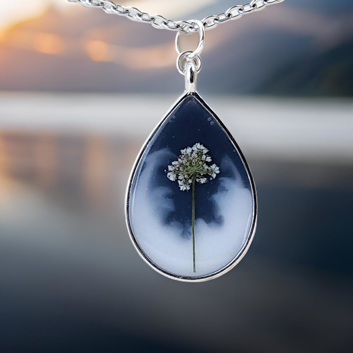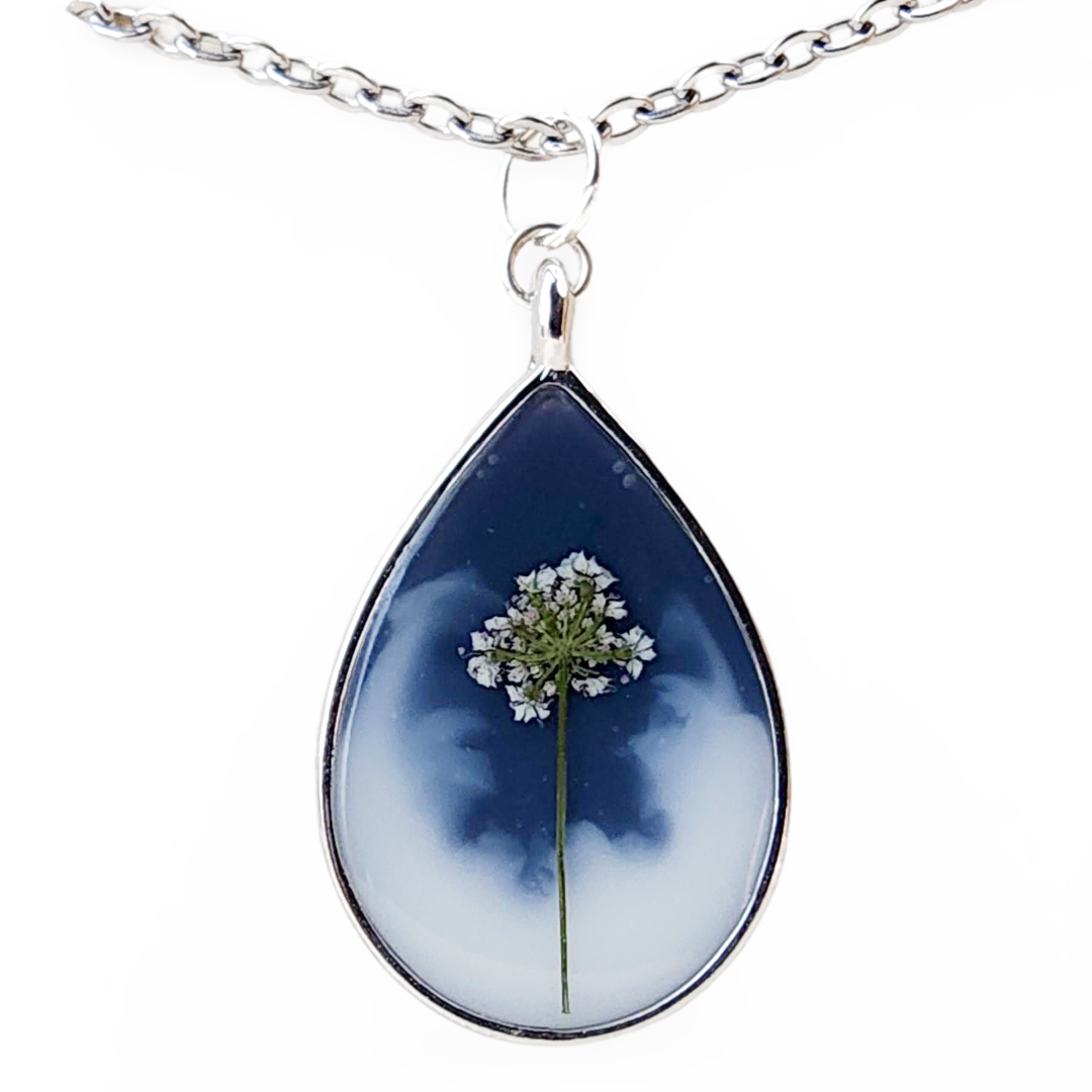 Materiales: Flores silvestres recolectadas a mano, resina y acero inoxidable.