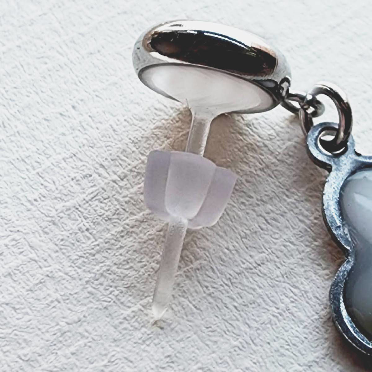 Pendientes de silicona antialérgica, acero inoxidable y resina.